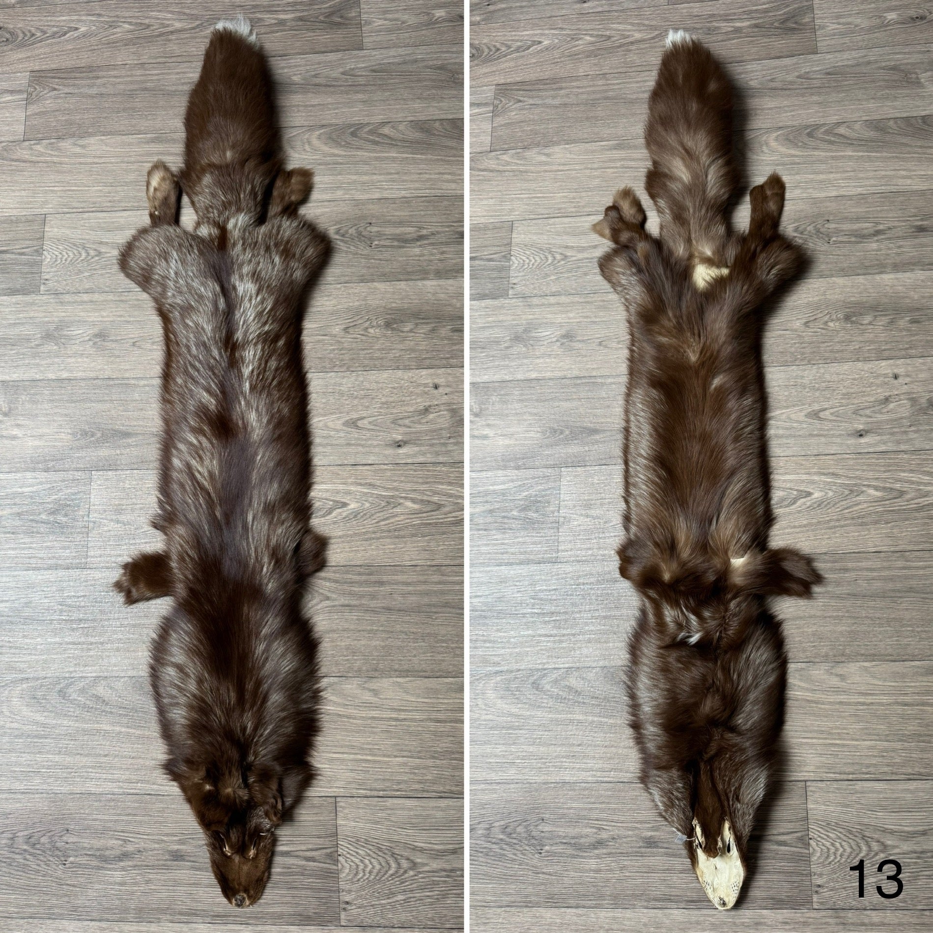 Size of the pelt from nose to tip of tail is 161 cm. Origin of the pelt is Finland.