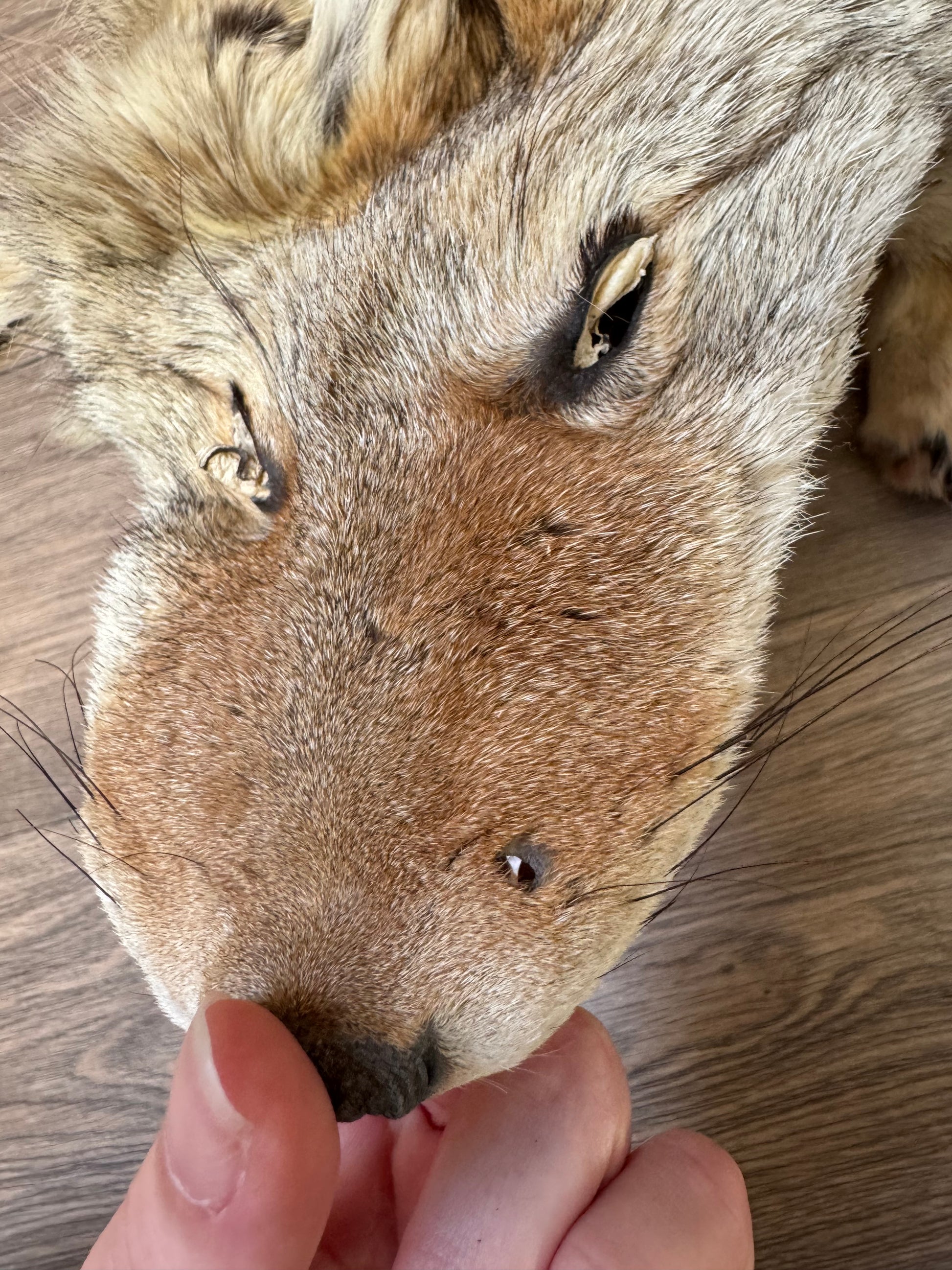 Size of the pelt is 132 cm nose to tip of tail. Western type coyote, nice white belly and decently soft fur.