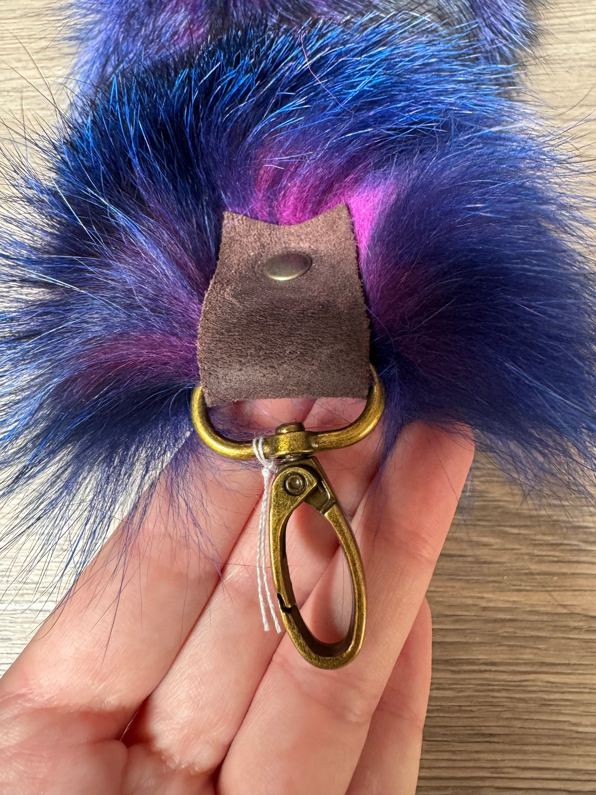 “Galaxy” dyed Blue Frost fox tail keychain (182)