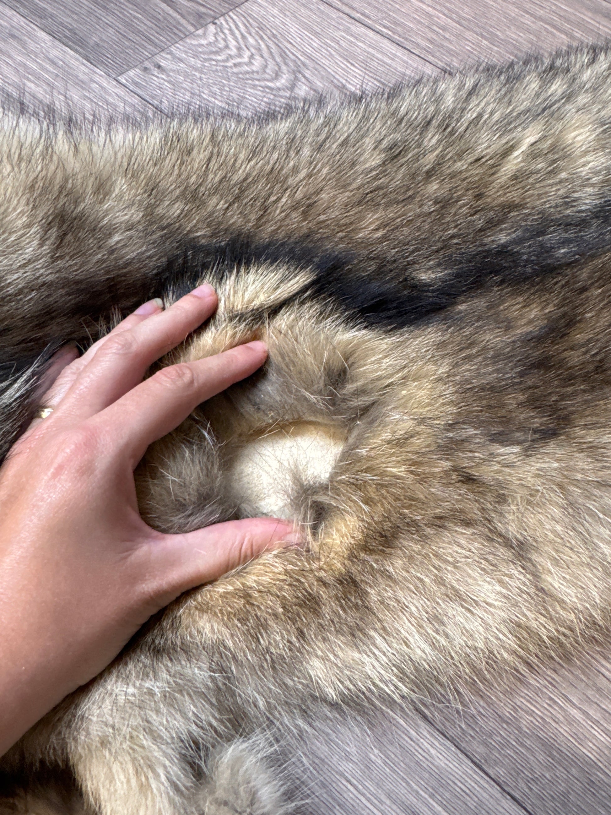 The pelt has been brushed, but it’s possible there’s some dried plant material still stuck in the pelt.