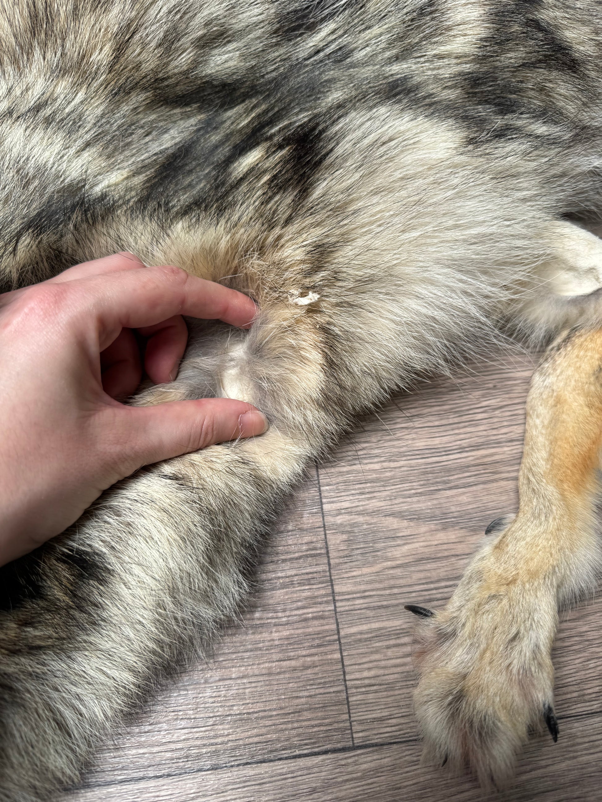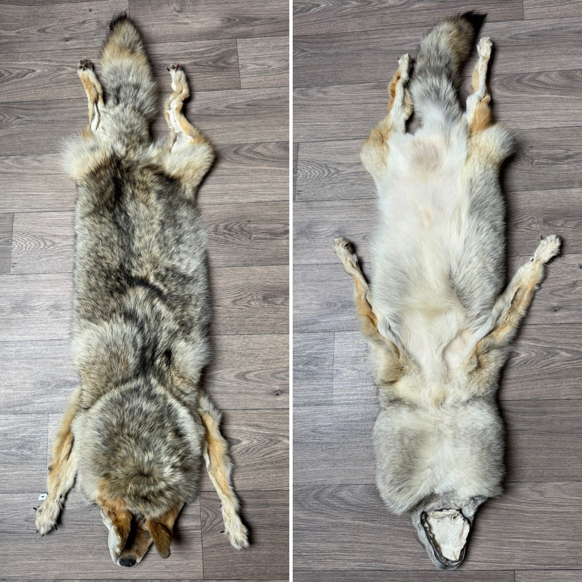 Size of the pelt is 141 cm nose to tip of tail. Western type coyote, nice white belly and decently soft fur.
