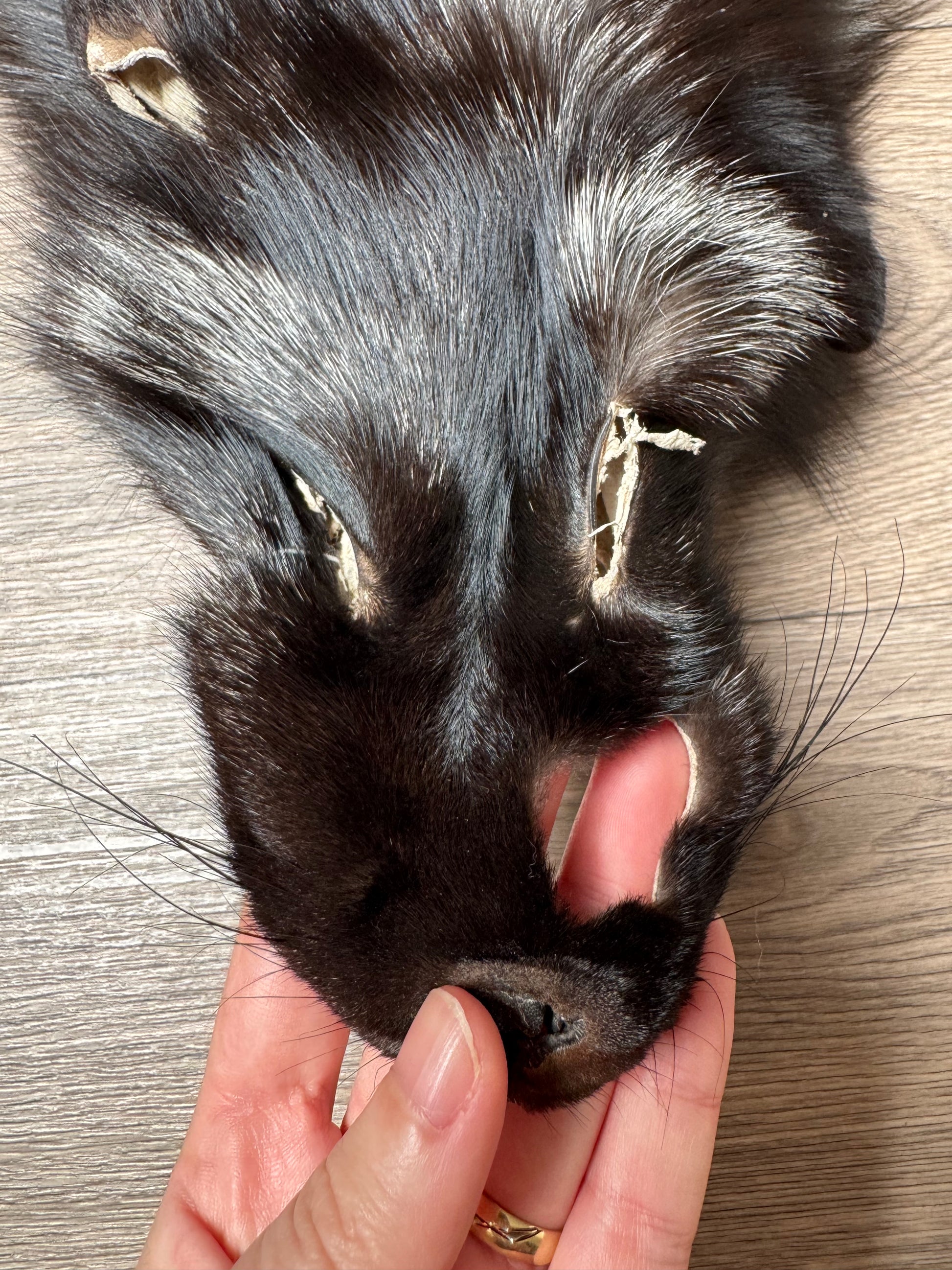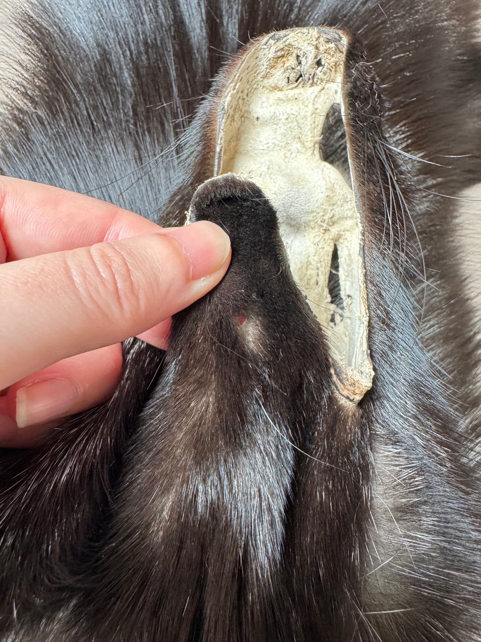 - Pelt has been fixed using a fur sewing machine, only visible on the leather side